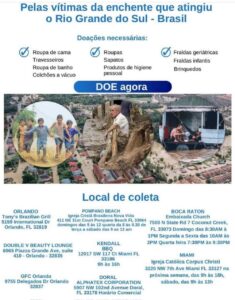 Brasileiros que moram na Flórida, nos Estados Unidos, se unem para enviar donativos às vítimas da tragédia que atinge o Rio Grande do Sul.