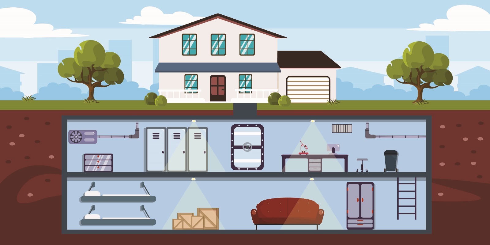 Os abrigos da elite não são simples porões reforçados. Eles incluem: