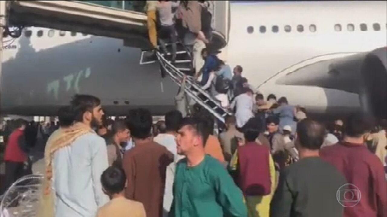 Milhares de pessoas invadiram a pista no aeroporto internacional de Cabul nesta segunda-feira (16), e multidões tentaram entrar em aviões para deixar o Afeganistão, agora dominado pelo Talibã. Vídeos circulando nas redes sociais mostram centenas de afegãos tentando fugir do país.