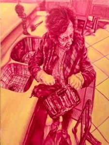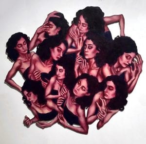 A artista de origem síria e cubana explora as pressões enfrentadas pelas mulheres árabes em seus trabalhos premiados, o Aboudaken de óleo sobre madeira e o Teta de acrílico sobre tela.