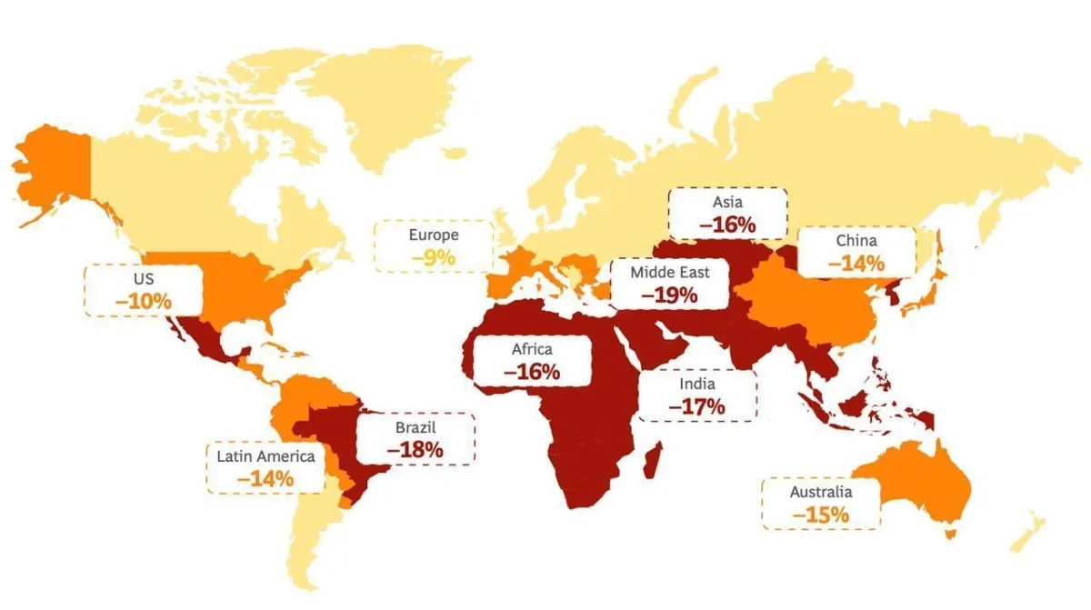 A projeção coloca o Brasil atrás apenas do Oriente Médio, que lidera o ranking global com perda estimada de 19% do PIB. O levantamento considerou dados do NGFS (Network for Greening the Financial System) e avaliou os impactos econômicos diretos e indiretos da elevação da temperatura média global em cada região.