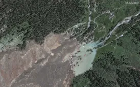 A Maxar Technologies coletou imagens de satélite na manhã desta quinta-feira (29). Cerca de 90% da vila ficou soterrada.