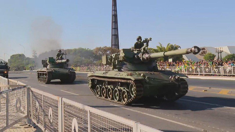 O desfile militar organizado pela Marinha nesta terça-feira (10) para levar um convite ao presidente Jair Bolsonaro no Palácio do Planalto teve repercussão em diversos meios internacionais. O ato, realizado no mesmo dia em que a Câmara vai votar a proposta do voto impresso, levou veículos blindados de uso militar à Praça dos Três Poderes chegou a ser descrito como “intimidatório”.