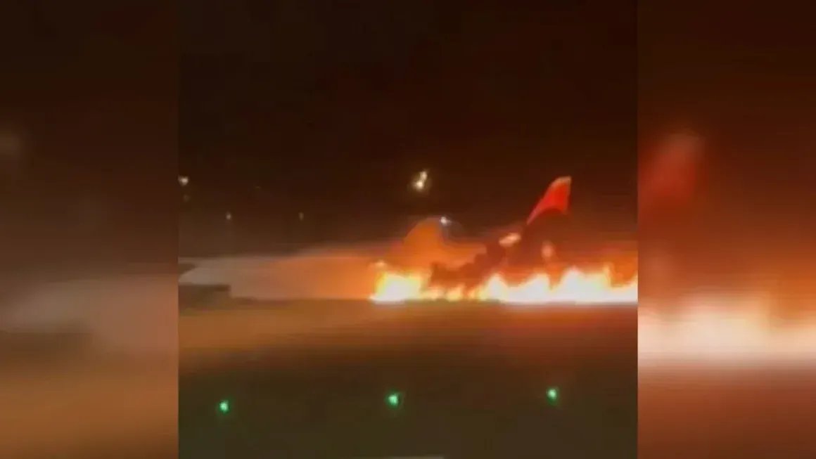 Um vídeo compartilhado nas redes sociais pelo site de notícias Airport Haber mostrou unidades de emergência no local do incêndio, com chamas e fumaça saindo do motor da aeronave.