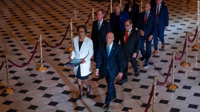 Nesta quinta-feira (16) um grupo de sete deputados federais, nomeados promotores do processo de impeachment do presidente Donald Trump, entregou oficialmente ao Senado, para julgamento, os artigos de impeachment contra Trump, que foram aprovados pela Câmara do Deputados em 18 de dezembro.