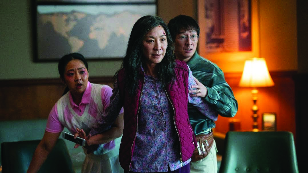 O filme ‘Tudo em todo lugar ao mesmo tempo’ narra a saga de uma imigrante chinesa presa entre a auditoria que a receita federal realiza sobre sua lavanderia, um casamento em crise, a busca pela aprovação do pai e, acima de tudo, a relação com uma filha que se afasta cada vez mais. A garota é a primeira entre eles, imigrantes chineses, a nascer nos Estados Unidos, e destoa em tudo da mãe conservadora que fica apavorada quando a filha planeja apresentar a namorada ao avô retrógrado. Como se já não estivesse dividida o suficiente, a protagonista da história ainda descobre sua existência em infinitos universos paralelos, e precisa acessar as experiências e habilidades de suas contrapartes para impedir um ser maligno que ameaça a todos.